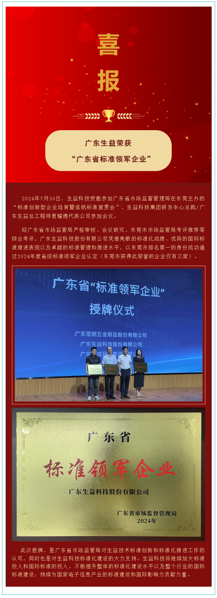 生益科技榮獲“廣東省標準領(lǐng)軍企業(yè)”稱(chēng)號