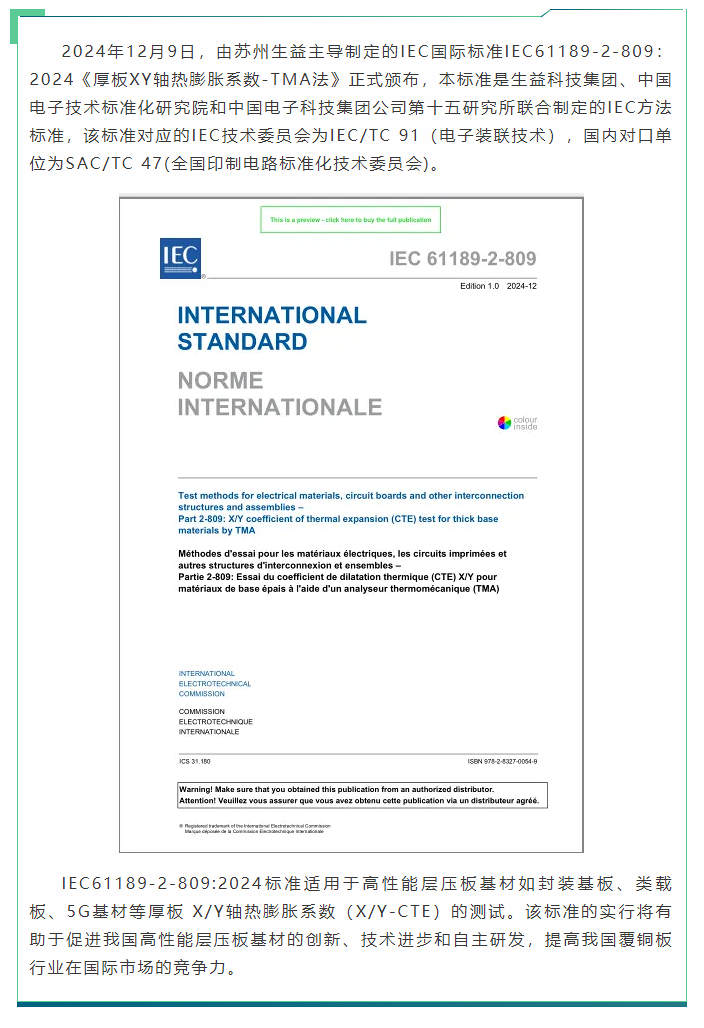 熱烈祝賀:蘇州生益主導制定的一項IEC國際標準正式頒布