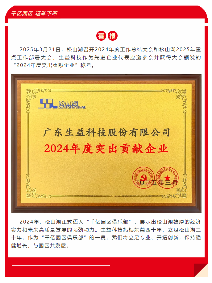 生益科技獲松山湖“2024年度突出貢獻企業(yè)”稱(chēng)號