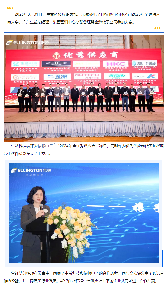 生益科技榮獲依頓電子“優(yōu)秀供應商”稱(chēng)號