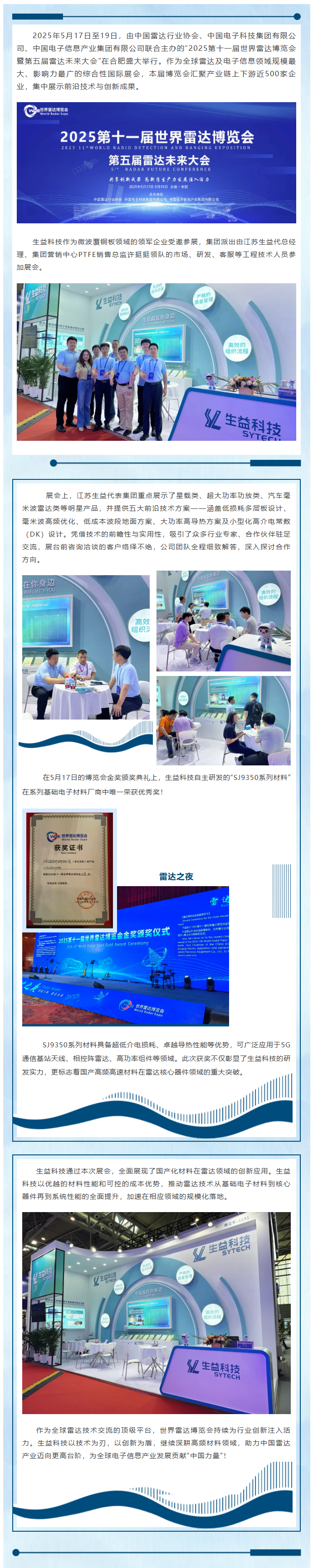 生益科技參加第十一屆世界雷達博覽會(huì )暨第五屆雷達未來(lái)大會(huì )