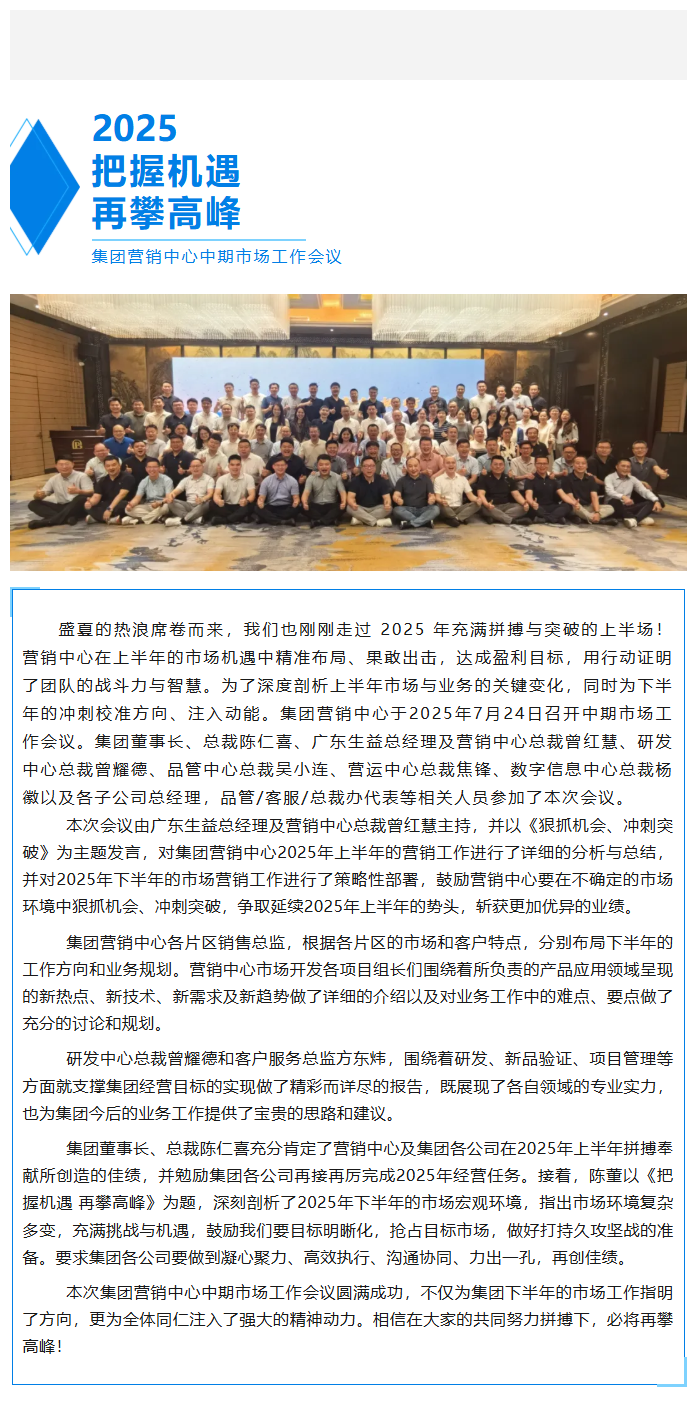 把握機遇 再攀高峰——集團營(yíng)銷(xiāo)中心舉行中期市場(chǎng)工作會(huì )議
