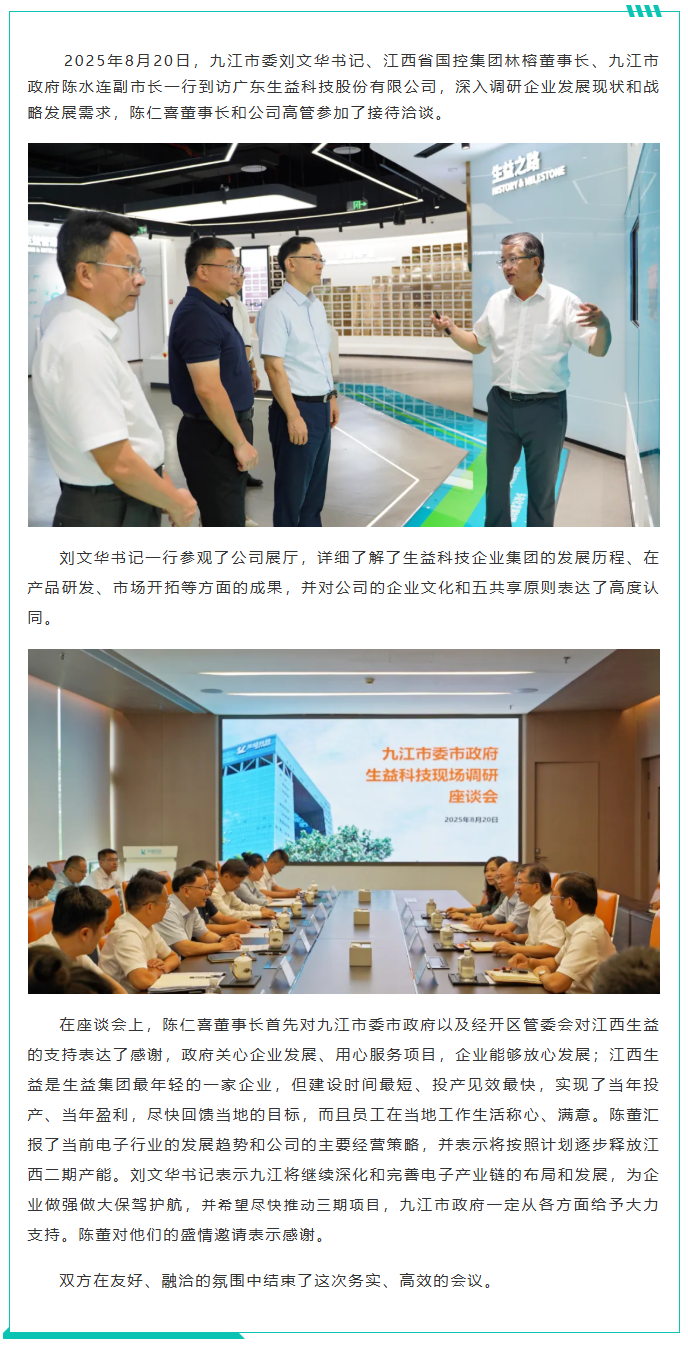 服務(wù)企業(yè)、關(guān)心企業(yè)——九江市委劉文華書(shū)記一行到訪(fǎng)生益科技